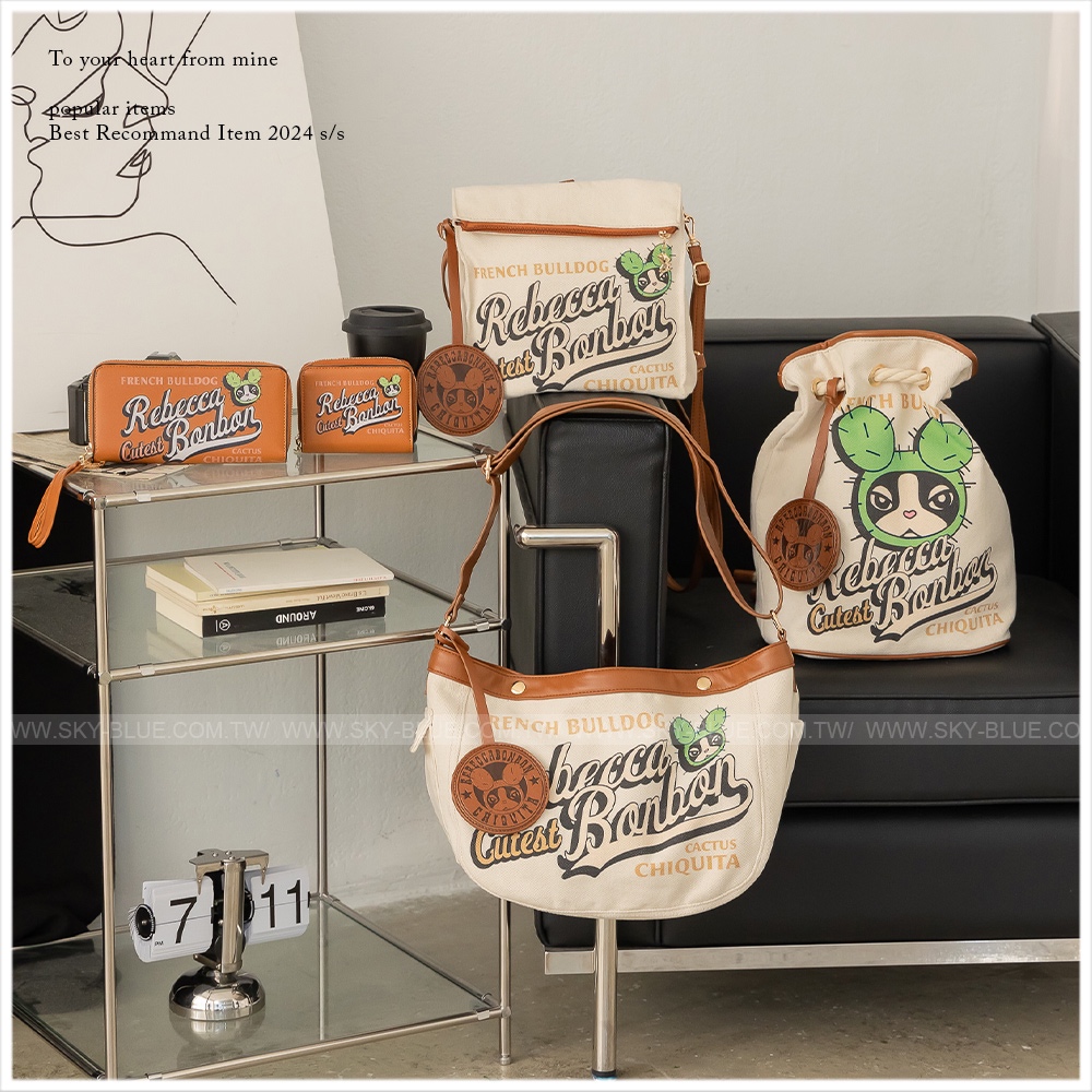 天藍小舖-Rebecca bonbon仙人掌狗頭帆布斜背/後背包-單1款-A12122268米白天藍小舖 SkyBlue