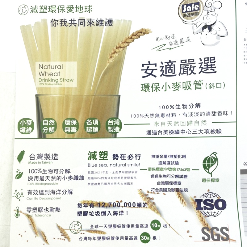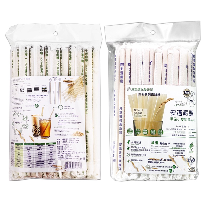 安適嚴選 環保小麥吸管(12mmx30支/8mmx50支) 斜口吸管 環保吸管 一次性吸管 拋棄式吸管 可分解吸管12mm x 30支入|8mm x 50支入Straws中聯興家庭五金批發
