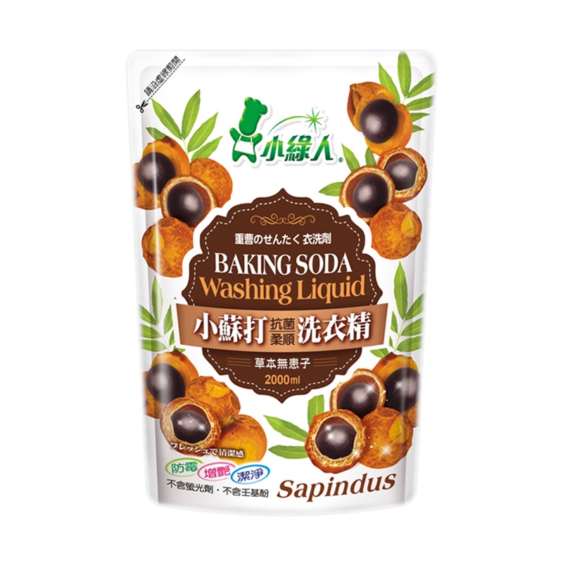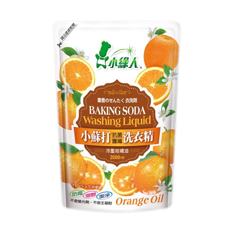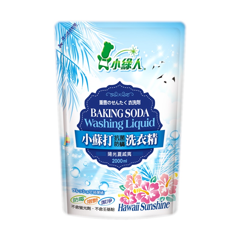 小綠人 小蘇打抗菌洗衣精(補充包) 2000ml 橘油/無患子/陽光夏威夷 衣物洗潔精 洗衣服冷壓柑橘油|無患子|陽光夏威夷Laundry Care中聯興家庭五金批發