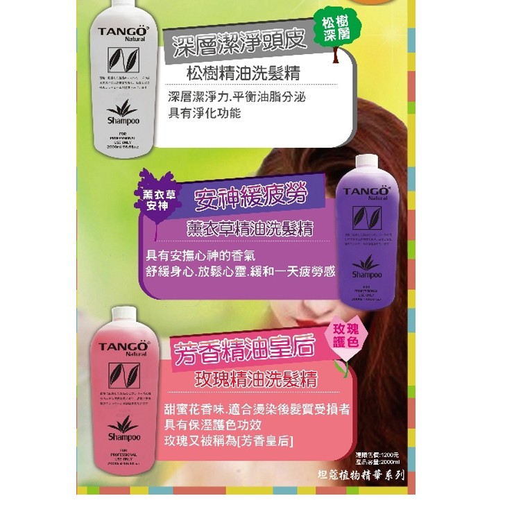 TANGO 坦蔻 洗髮精(2000ml) 鎖色/修護/安神/深層淨化/清涼【小三美日】D370002海洋玫瑰鎖色洗髮精|洋甘菊修護洗髮精|薰衣草安神洗髮精|松樹深層淨化洗髮精|青蘋果清涼洗髮精Shampoo小三美日