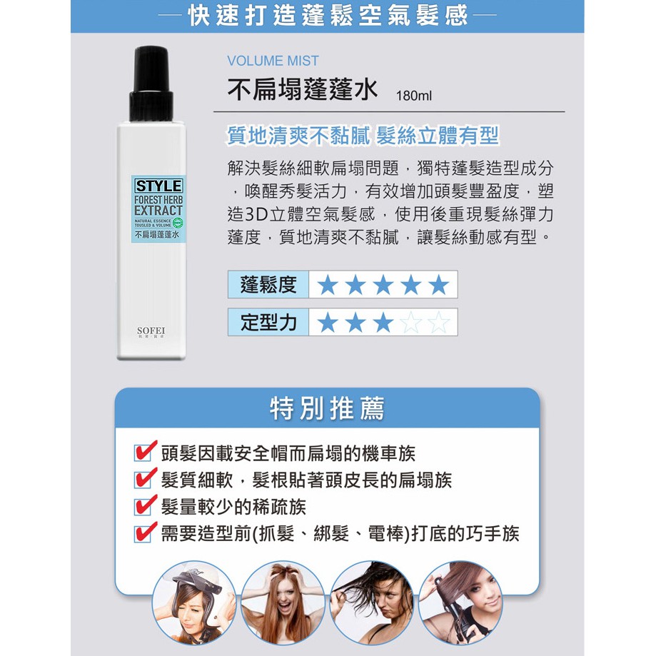 SOFEI 舒妃 型色家 蓬蓬水/捲捲乳/定型液/髮雕露/髮妝水(180ml)【小三美日】D007673不扁塌蓬蓬水|超級Q捲捲乳|直挺挺定型液|亮晶晶髮雕露|噴就柔髮妝水Hair Styling小三美日