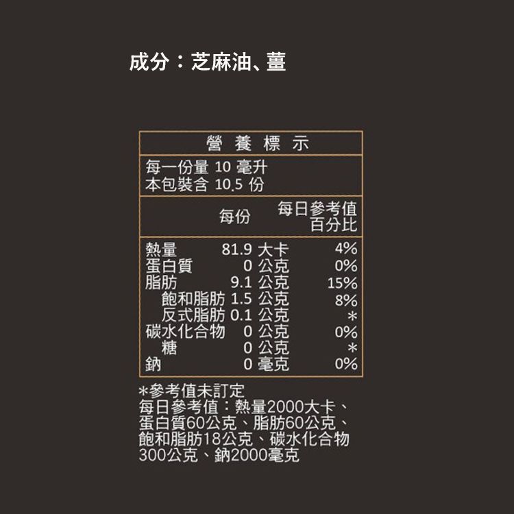 SesaOle 芝初 薑麻油 (105ml) 麻油 拌飯 拌麵 燉補 料理油 薑 養生料理【小三美日】DS025536單一Oil小三美日