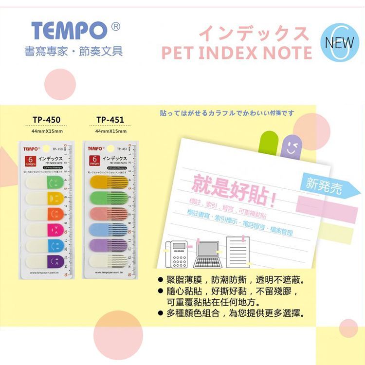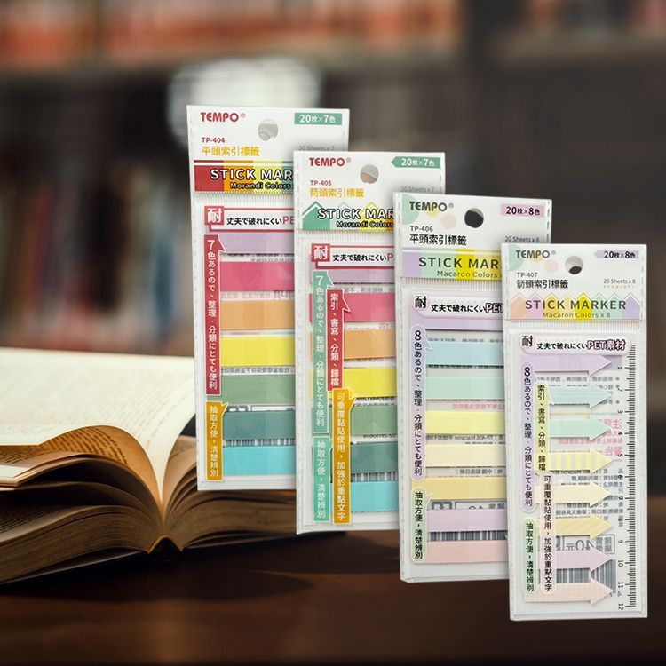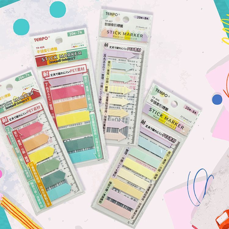 Tempo 節奏 索引標貼 微笑 線條 莫蘭迪七色 馬卡龍八色 梯形 平頭 箭頭 標籤【小三美日】DS024367x莫蘭迪七色平頭索引標貼TP-404|莫蘭迪七色箭頭索引標貼TP-405|馬卡龍八色平頭索引標貼TP-406|馬卡龍八色箭頭索引標貼TP-407|梯形五色索引標貼TP-452|梯形六色索引標貼TP-453|微笑索引標貼TP-450(25枚x6色)|線條索引標貼TP-451(25枚x6色)Labels & Stickers小三美日