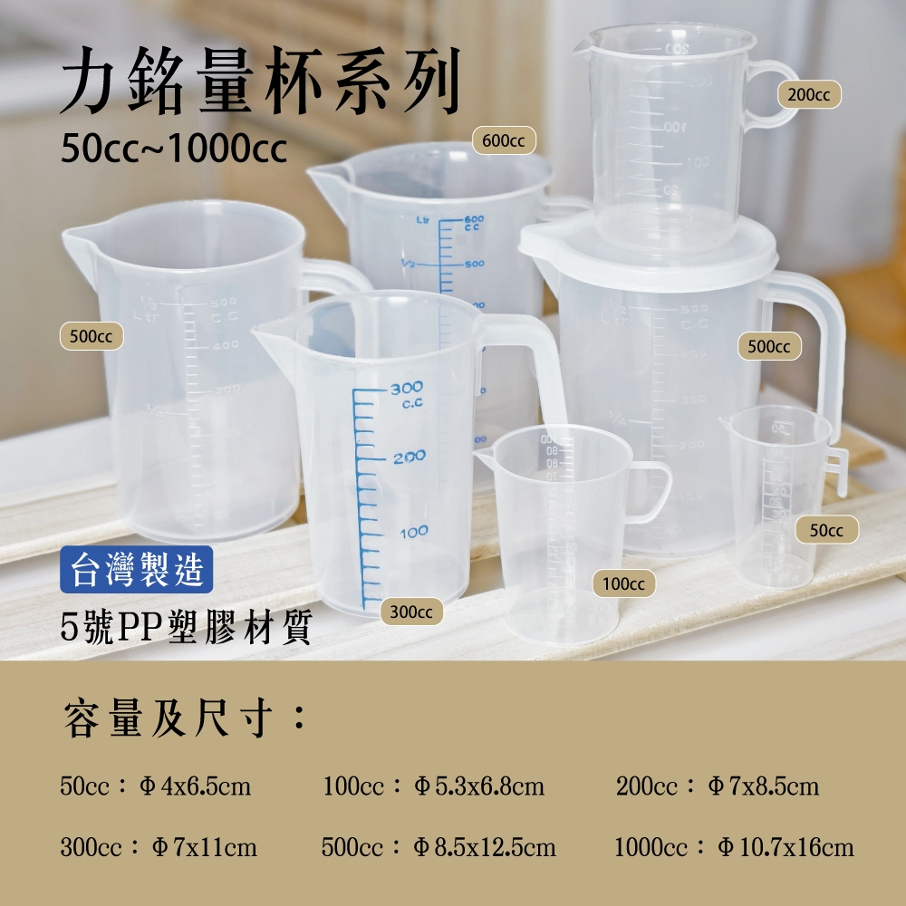 【台灣製】力銘量杯 50cc~1000cc 刻度量杯 透明量杯 烘培 尖嘴塑膠量杯 量米杯 藥水量杯1000cc-Φ10.7x16cm|300cc-Φ7x11cm|500cc-Φ8.5×12.5cm|50cc-Φ4×6.5cm|100cc-Φ5.3×6.8cm|200cc-Φ7×8.5cm|500cc附蓋-Φ8.5×12.5cm|600cc-Φ9.5x14cm|1000cc附蓋-Φ10.7x16cmMeasuring Glasses & Spoons中聯興家庭五金批發