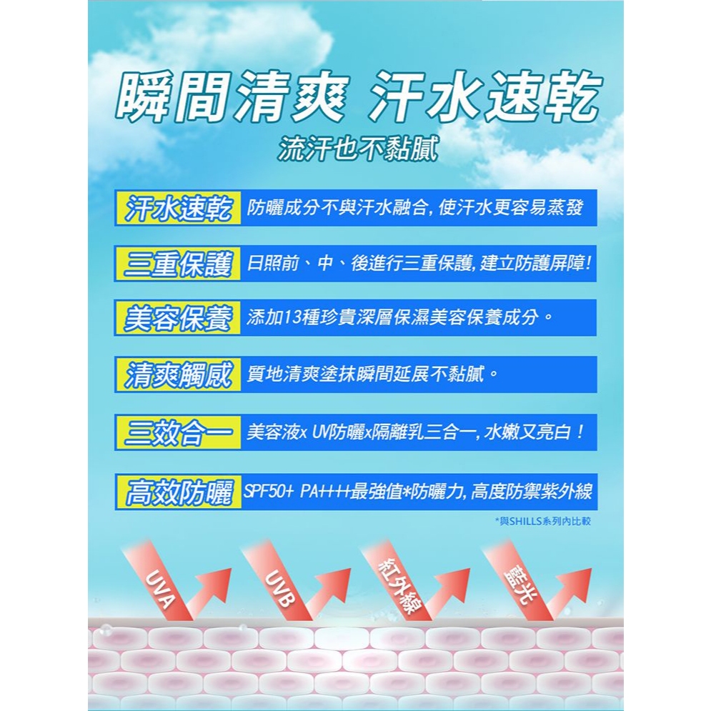 SHILLS 舒兒絲 很耐曬水感超清爽美容液防曬凝乳 (50g) 防曬乳 防曬 亮白 夏天【小三美日】DS026758單一Sun Care小三美日