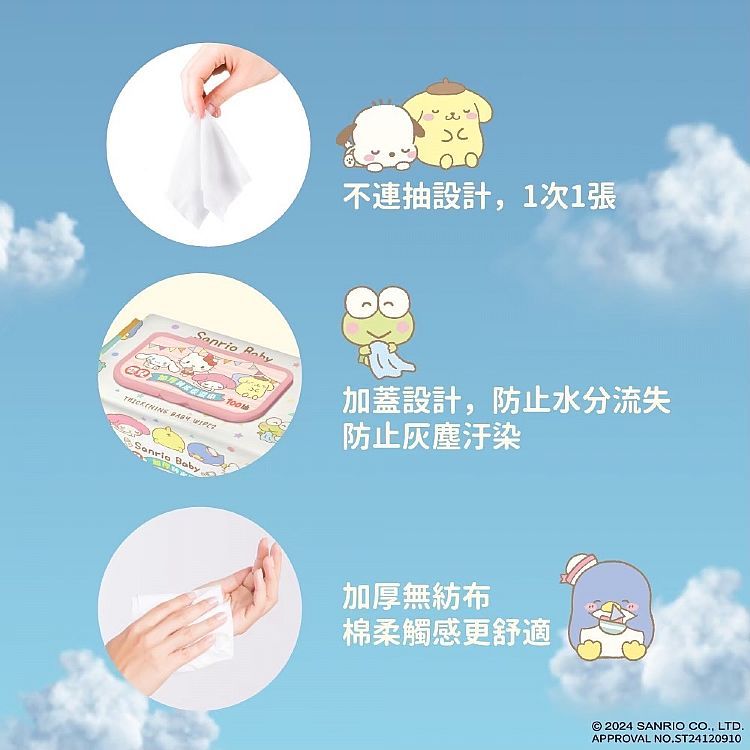 SANRIO 三麗鷗 嬰兒加厚 純水柔濕巾 (加蓋)100抽 寶寶濕紙巾 濕紙巾 加厚濕紙巾【小三美日】DS026030單一Wipes小三美日