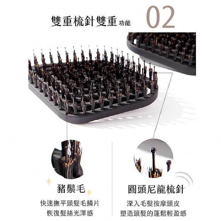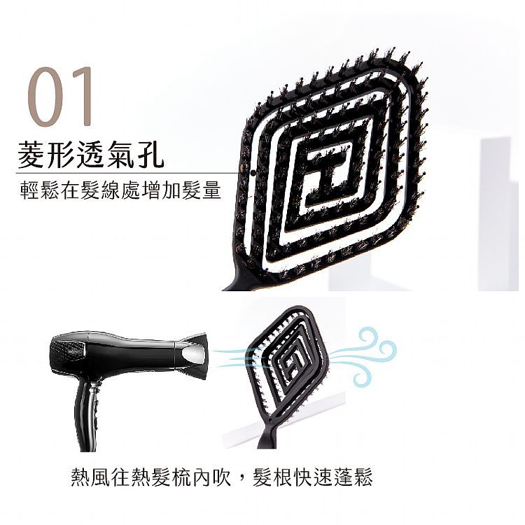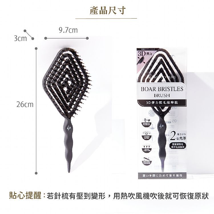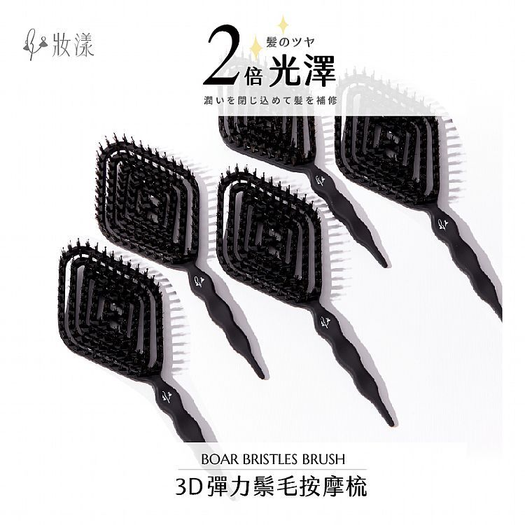 妝漾 3D彈力 鬃毛按摩梳 (1入) 梳子 梳頭髮 抗靜電 尖尾梳 頭皮按摩 彈力梳 蓬鬆感【小三美日】DS026139單一Hair Tools小三美日