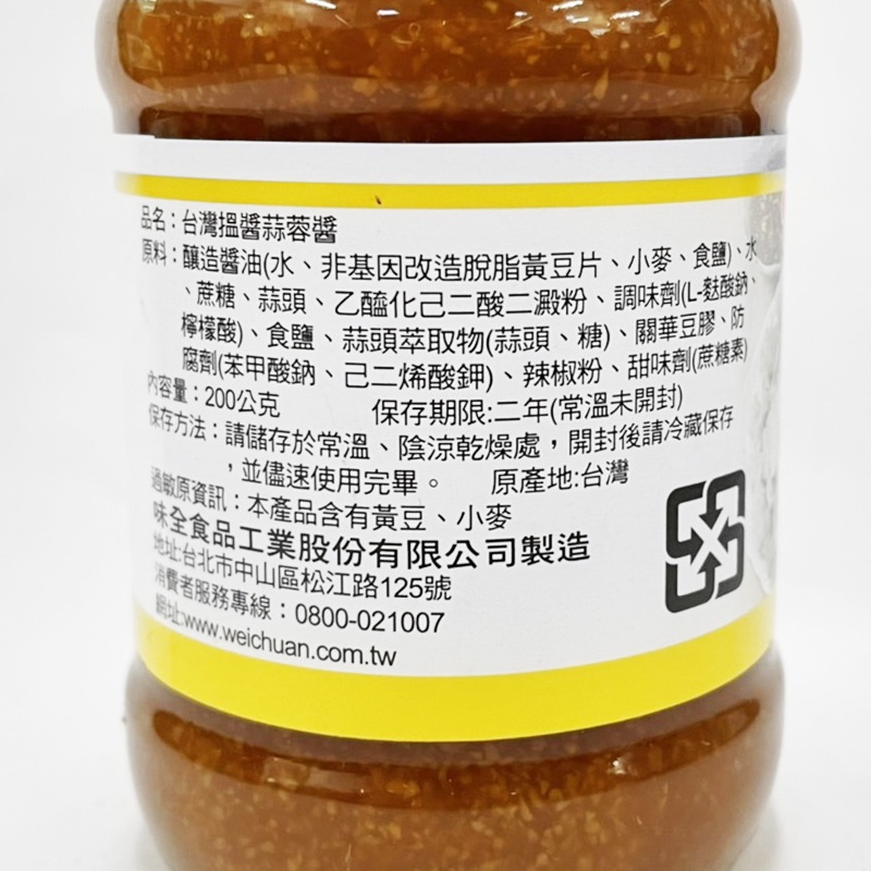 味全 蒜蓉醬 200g 水餃沾醬 調味醬 沾拌醬 蒜味醬油 料理醬料味全 蒜蓉醬 200g 水餃沾醬 調味醬 沾拌醬 蒜味醬油 料理醬料Seasonings & Condiments中聯興家庭五金批發