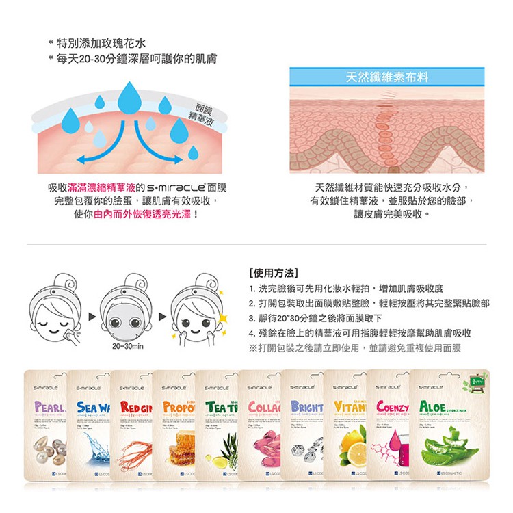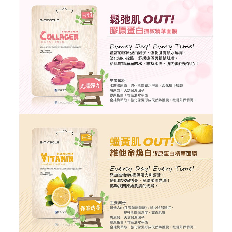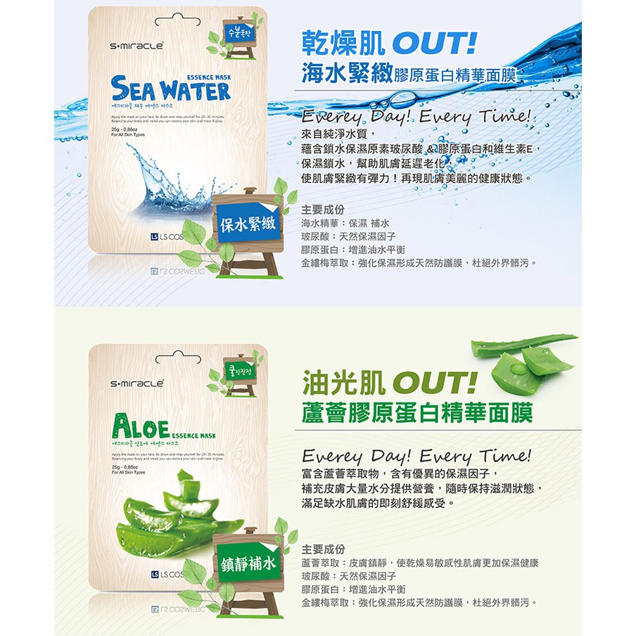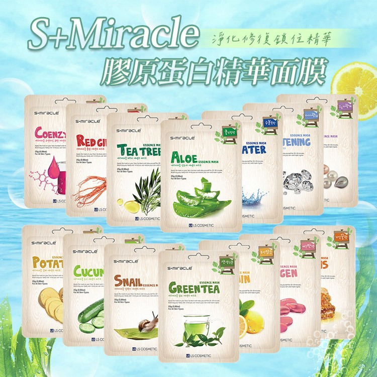 韓國 S+Miracle 膠原蛋白精華面膜(單片25g) 亮白 煥白 維他命 蘆薈 緊緻 珍珠【小三美日】D422953紅蔘|膠原蛋白|維他命煥白|珍珠|亮白維他命|茶樹|海水緊緻|蜂膠柔嫩|綠茶|Q10|馬鈴薯|蝸牛|蘆薈|小黃瓜Face Mask & Packs小三美日