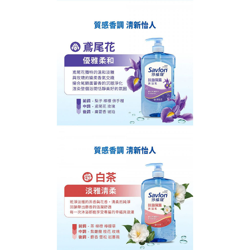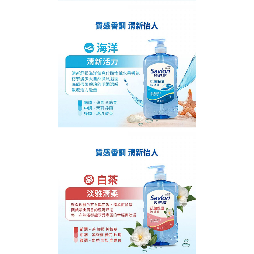 Savlon 沙威隆 抗菌保濕沐浴乳(850g) 款式可選【小三美日】 DS016615白茶|洋甘菊|茶樹|蘆薈|海洋|琥珀雪松|鳶尾花Body Wash & Soap小三美日