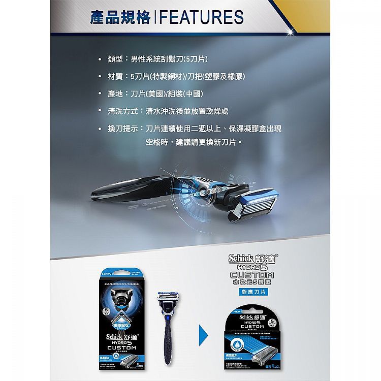 Schick 舒適 水次元5辨型刮鬍刀(保濕配方)1刀把2刀片【小三美日】DS002643單一規格Shaving & Grooming小三美日