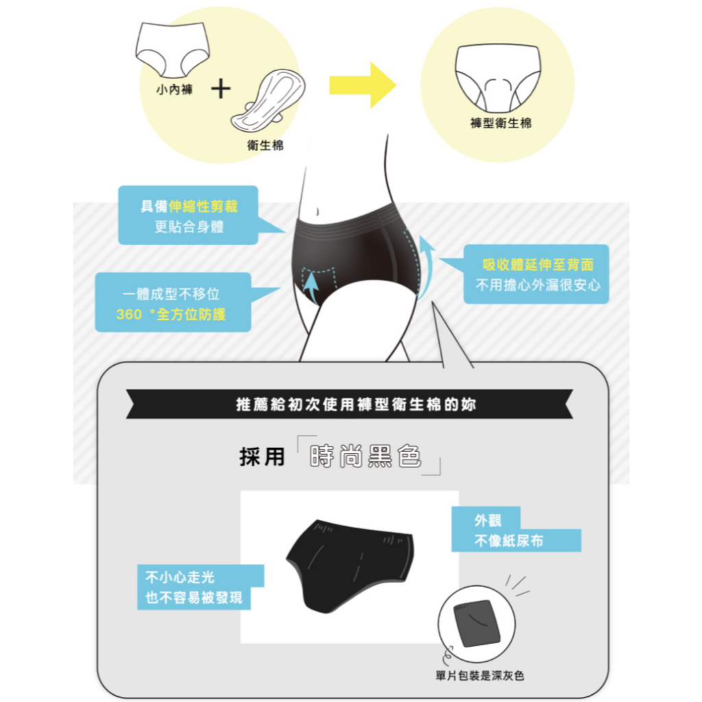 日本大王elis 愛麗思日夜無憂褲型棉(時尚黑)衛生棉L_LL 2入/包 (包購)L1包|M1包Feminine Care日本大王elleair 官方旗艦店