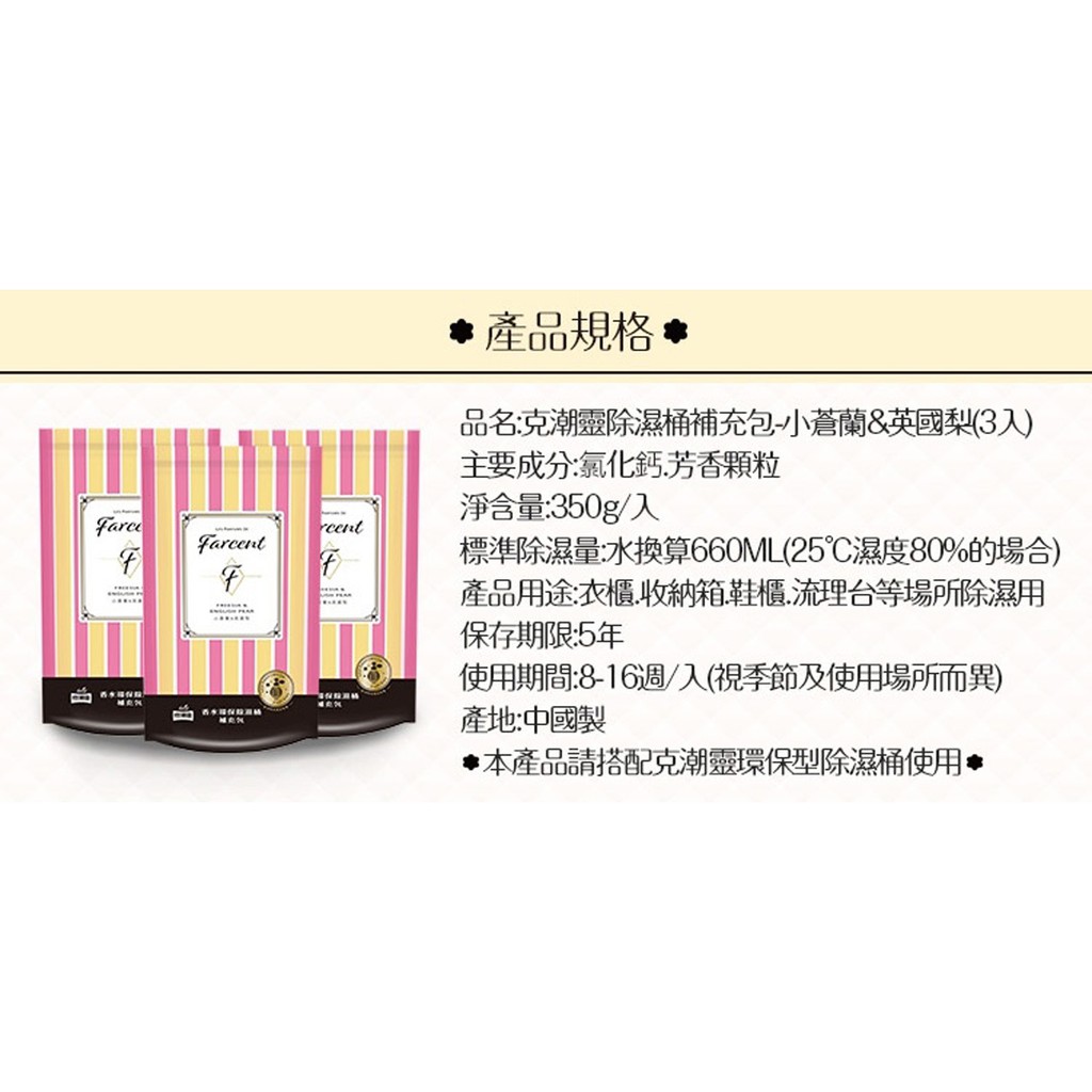克潮靈 香水環保除濕桶(小蒼蘭&英國梨)補充包(3包入) 除溼 日用品 防潮 環保 香氛除濕【小三美日】D060183單一規格Others小三美日