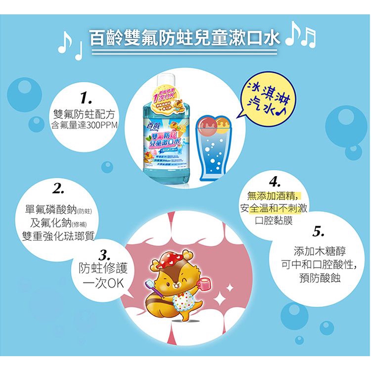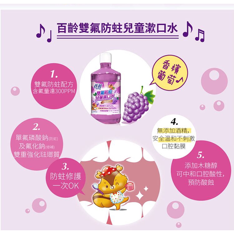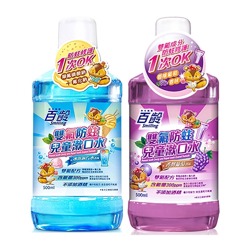 百齡 雙氟防蛀兒童漱口水(500ml)【小三美日】D471684冰淇淋汽水|香檳葡萄Oral Care小三美日