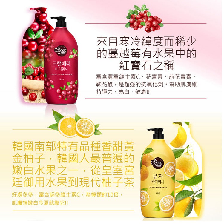 Shower Mate 微風如沐果香沐浴乳(1200g)【小三美日】D324783沁萊姆(綠)|香甜柚(黃)|甜蜜桃(粉)|棉花籽(白)|蔓越莓(紅)Body Wash & Soap小三美日