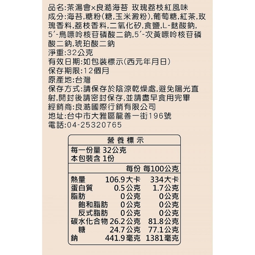 良澔 海苔(玫瑰荔枝紅風味)32g 茶湯會聯名 休閒零食 零嘴 下午茶 伴手禮 懷舊 海苔【小三美日】DS026729單一Seaweed小三美日