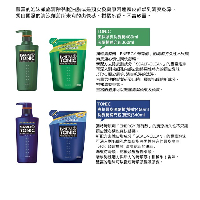 日本 SUNSTAR TONIC 爽快頭皮 雙效合一洗髮精 460ml 不含矽靈 清涼薄荷 三詩達官方直營日本 SUNSTAR TONIC 爽快頭皮 雙效合一洗髮精 460ml 不含矽靈 清涼薄荷 三詩達官方直營Shampoo日本三詩達SUNSTAR|愛樂齒Ora2|G.U.M|巧虎|廣納口腔保健品牌旗艦