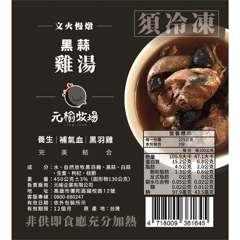 【元榆牧場】天然回甘黑蒜雞湯(土雞)/450-1100g|快速料理黑蒜雞湯(土雞)-小包裝/450g|黑蒜雞湯(土雞)-大包裝/1100gCooked Food元榆牧場FROMFARM
