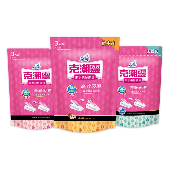 克潮靈 集水袋補充包(3入) 玫瑰香/去霉味/檜木香 除溼 除濕 防潮 集水 吸水 防霉【小三美日】D052501玫瑰香|去霉味|檜木香Others小三美日