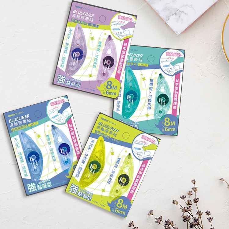 Tempo 節奏 BLUELINE滾輪膠帶貼(MGT-45)1+1(1組入) 豆豆貼 黏貼【小三美日】DS024337藍色|紫色|綠色|黃色Strings & Tapes小三美日