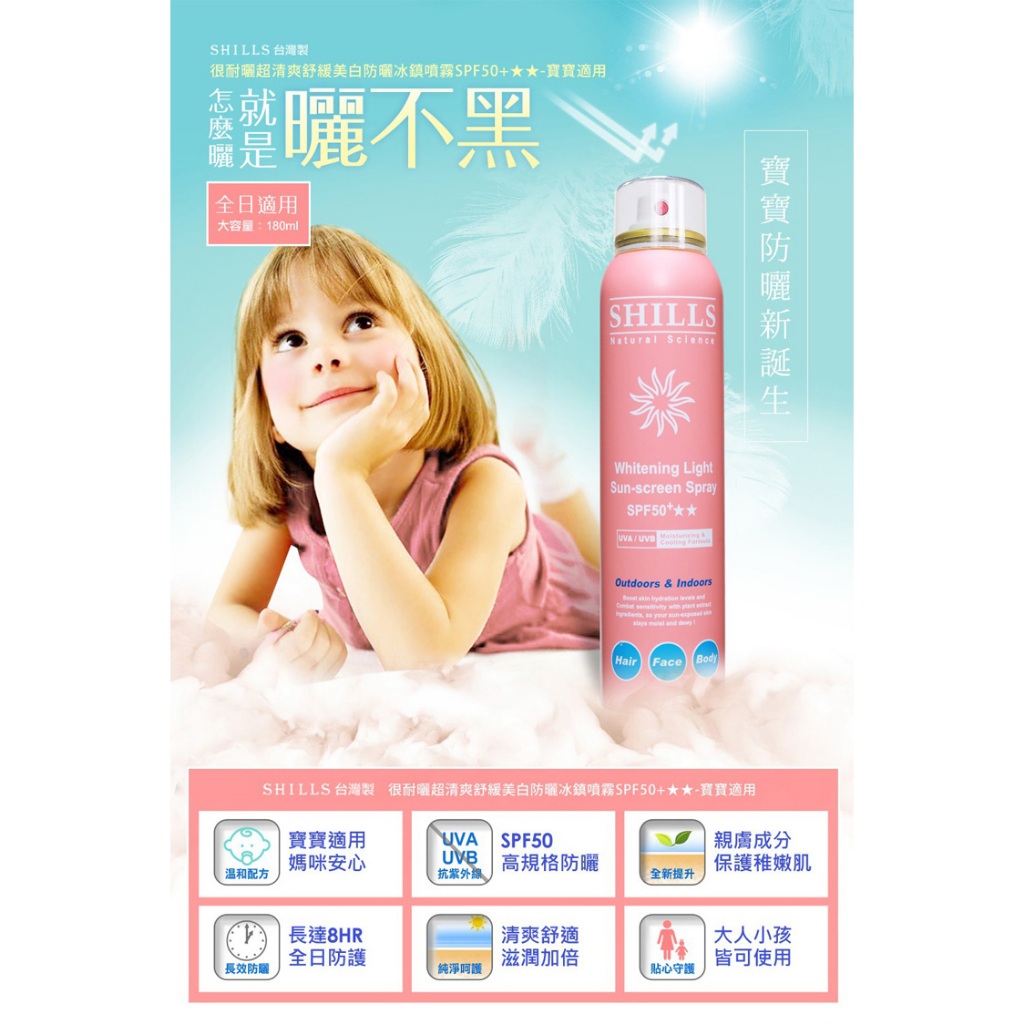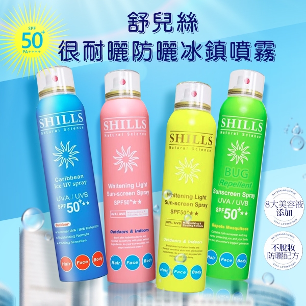 SHILLS 舒兒絲 很耐曬防曬冰鎮噴霧SPF50-180ml 美白/草本/寶寶適用【小三美日】空運禁送 D624370(藍)很耐曬清爽美白防曬噴霧|(黃)很耐曬清爽舒緩美白防曬噴霧|很耐曬超清爽美白防曬噴霧-天然草本|(粉寶寶適用)超清爽舒緩美白防曬冰鎮噴霧Sun Care小三美日