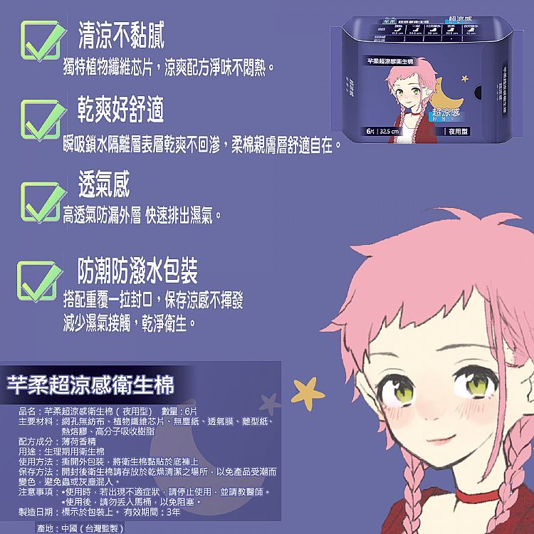芊柔 超涼感衛生棉(1包入) 款式可選 衛生棉 護墊 芊柔衛生棉 涼感 日用 夜用 量多型【小三美日】DS018488一般型(24.5cm*8片)|量多型(28cm*7片)|夜用型(32.5cm*6片)|護墊(15.5cm*20片)Feminine Care小三美日