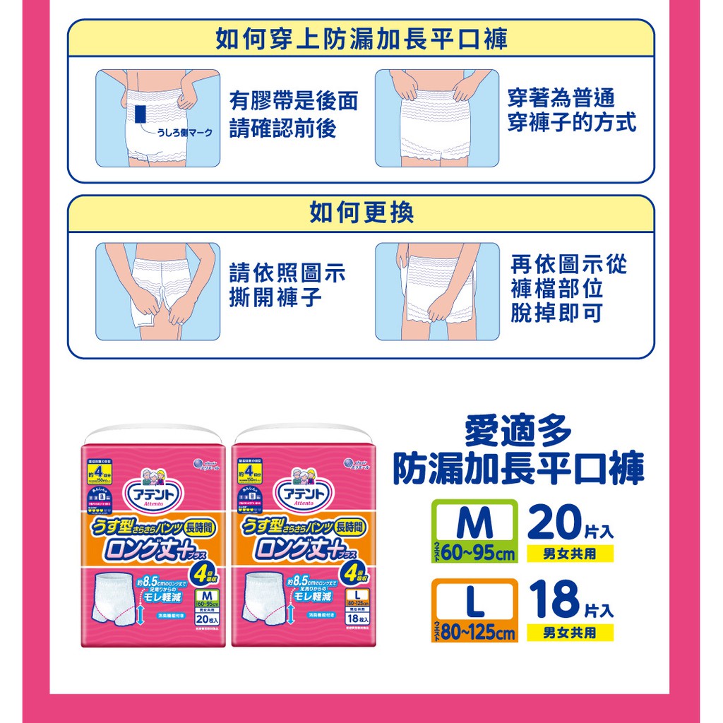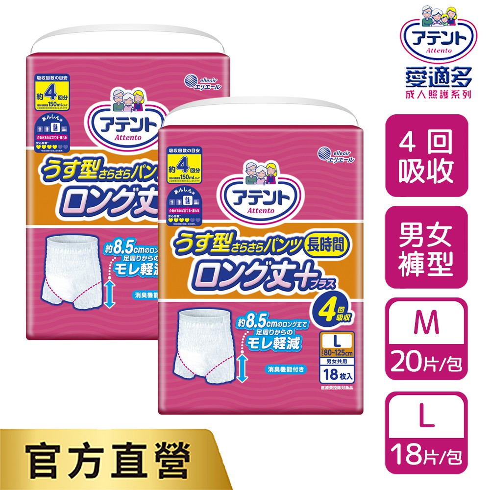 日本大王Attento愛適多 防漏加長平口褲 M(20片/包)/L(18片/包) 4回吸收 (包購)M (20片/包)|L (18片/包)Adult Diapers & Incontinence日本大王elleair 官方旗艦店
