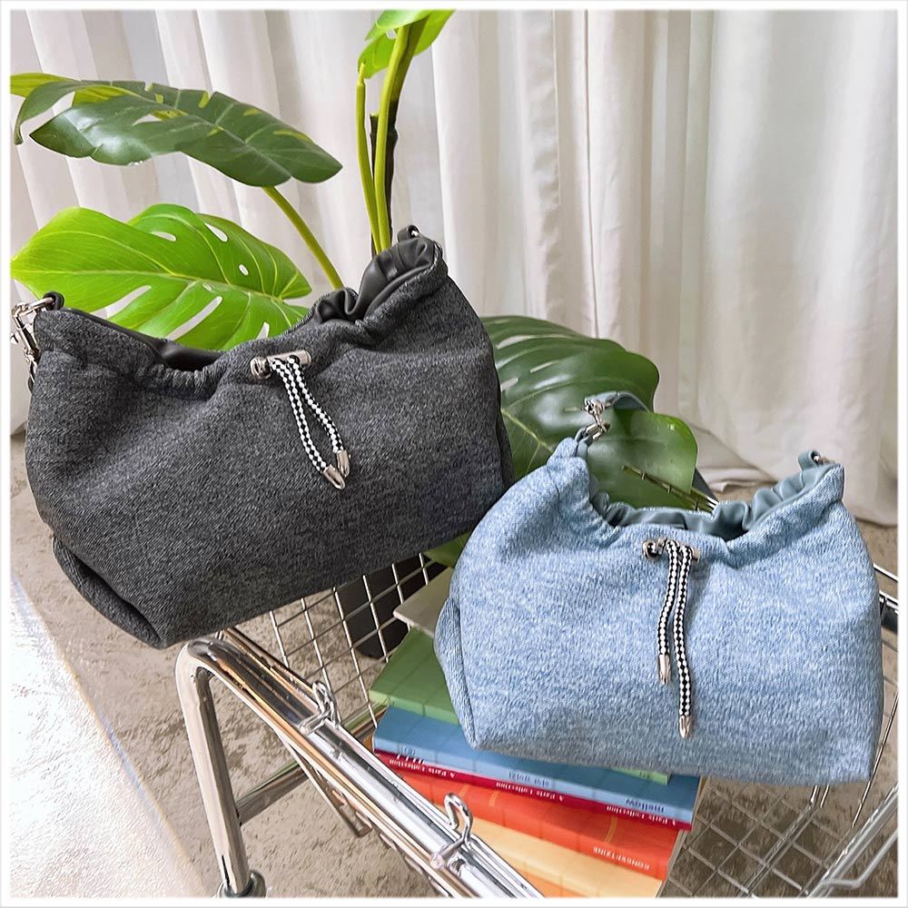 天藍小舖-仿牛仔皮革束口肩背/斜背包-共3色-A15153080黑色|藍色|杏色天藍小舖 SkyBlue