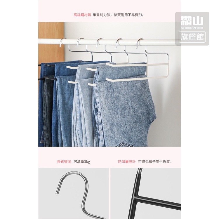 防滑無痕型多功能雙排褲架-15入【日本霜山旗艦館】白|黑Hangers & Pegs日本霜山SHIMOYAMA旗艦館|台灣獨家總代理