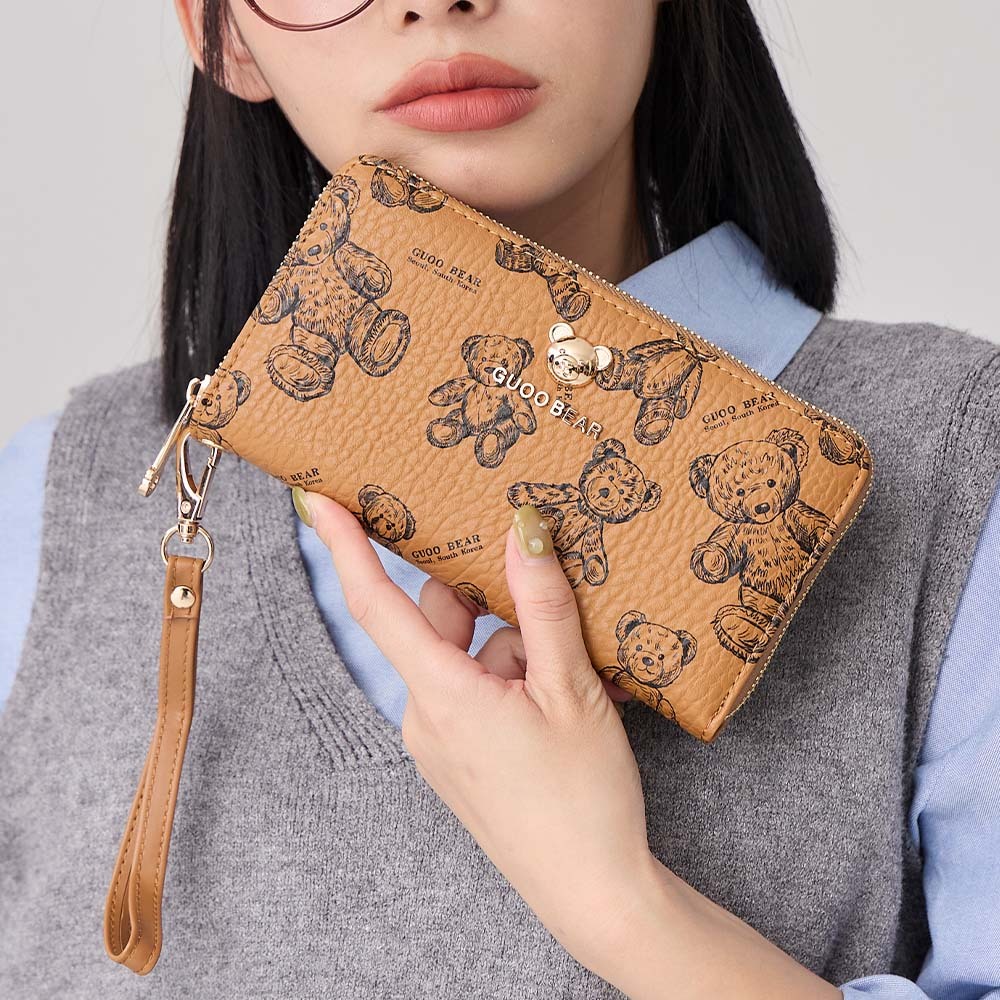 天藍小舖-GUOO BEAR手繪小熊皮革長夾-單1款-A08081861