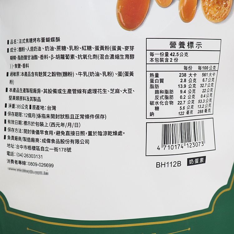 盛香珍 蝴蝶酥(85g) 款式可選 餅乾 零食 零嘴 休閒美食 伴手禮 辦公室零食 可可【小三美日】DS023634可可|法式焦糖烤布蕾Biscuits, Cookies & Wafers小三美日