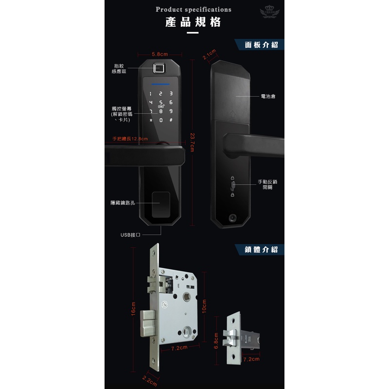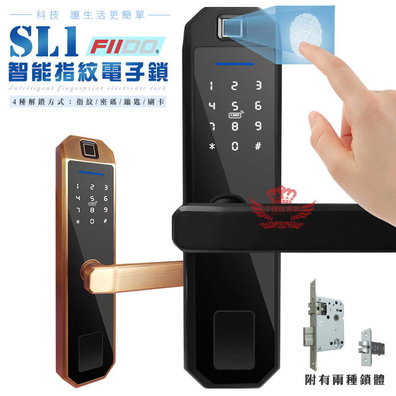SL1智能電子鎖【手機批發網】《指紋+磁卡+密碼+鑰匙》 防盜鎖 門鎖 指紋鎖 公司貨 一年保固 FIIDOSL1紅|SL1黑Door Hardware & Locks手機批發網