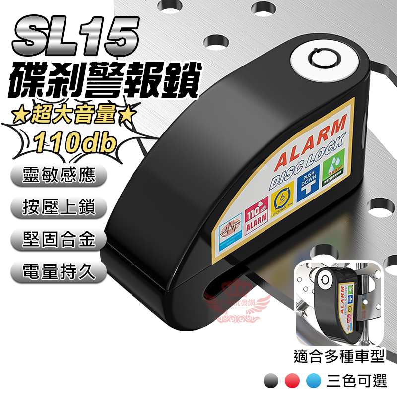 【現貨-隔日到貨】 SL15警報鎖【手機批發網】 按壓上鎖 防撬 防盜鎖 碟煞鎖 機車鎖 自行車鎖 電動車鎖SL15黑|SL15紅|SL15藍Cycling手機批發網