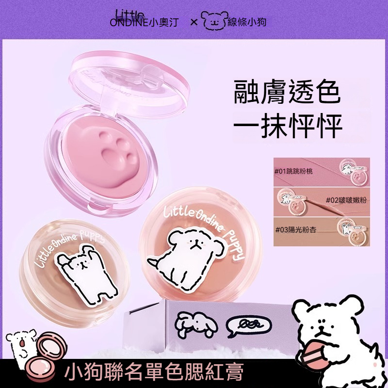 小奧汀Little ondine線條小狗聯名腮紅霧面自然提亮膚色多用小奧丁單色腮紅膏【台灣官方旗艦店】01跳跳粉桃(送拇指粉撲x1)|02啵啵嫩粉(送拇指粉撲x1)|03陽光粉杏(送拇指粉撲x1)|04嘟嘟蜜瓜(送拇指粉撲x1)|05乖乖蜜桃(送拇指粉撲x1)|06熱情野莓(送拇指粉撲x1)|07撲撲紅梨(送拇指粉撲x1)Face小奧汀LITTLE ONDINE 台灣官方旗艦店