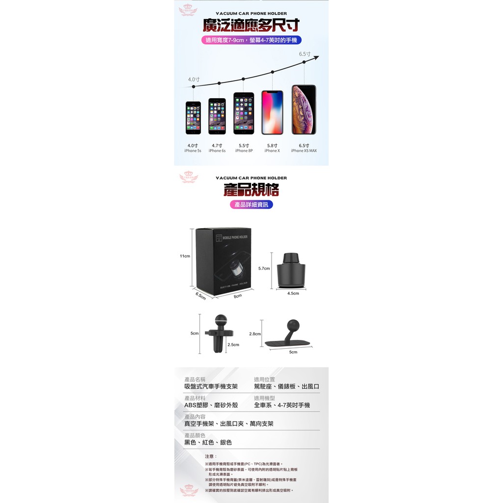 車用手機架【手機批發網】《真空吸附+台灣現貨》兩用型 出風口夾 支架 可夾可貼 手機架紅|黑|銀Phone Holders手機批發網