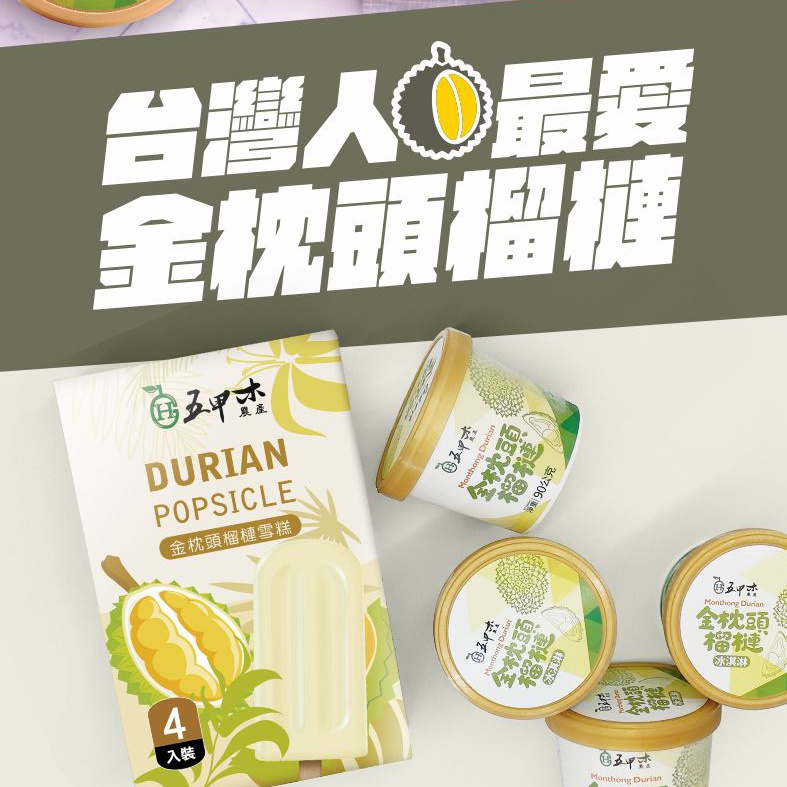 [五甲木]泰皇御選 金枕頭榴槤雪糕(4入/盒) 免運組4盒,共16支|8盒,共32支Ice cream五甲木農產
