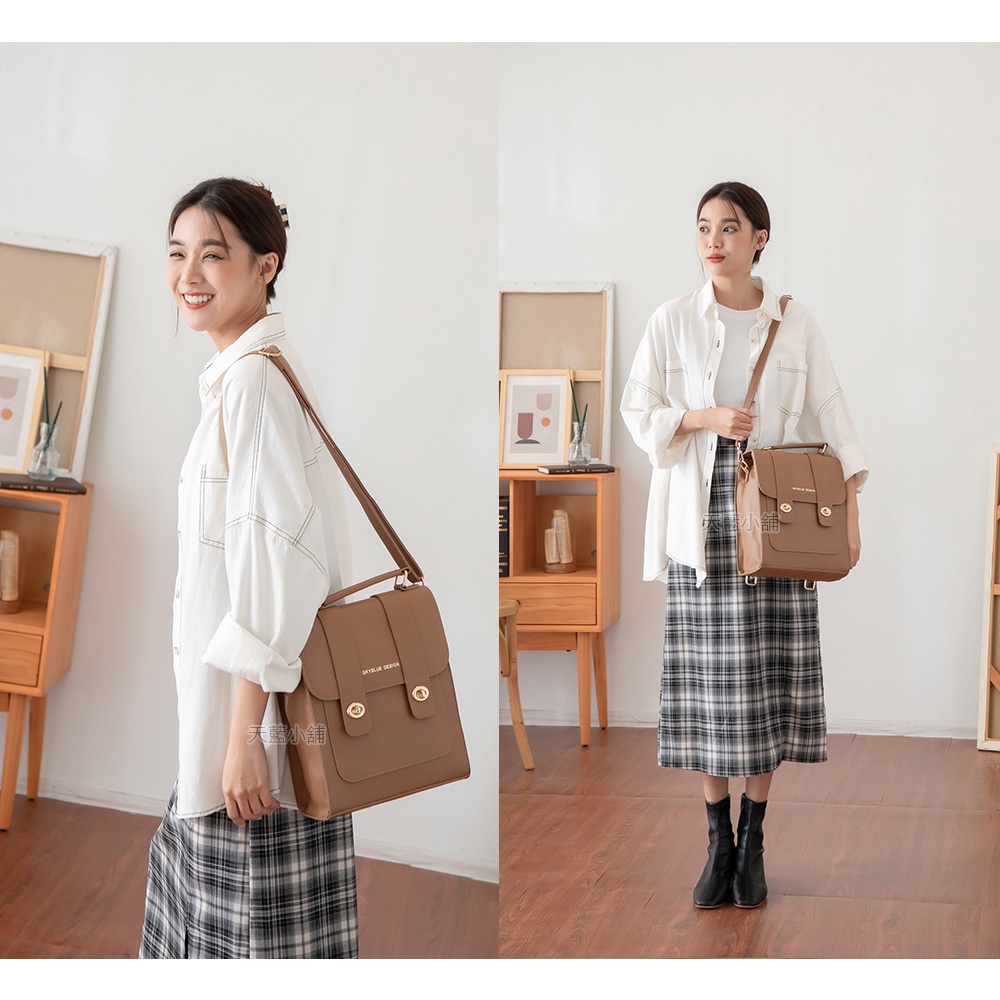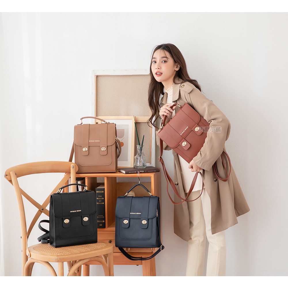天藍小舖-skyblue自訂學院風挺版轉鎖兩用後背包-共4色-A12122139黑色|磚紅|藍色|卡其天藍小舖 SkyBlue