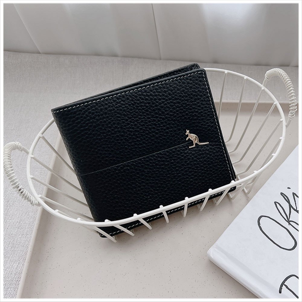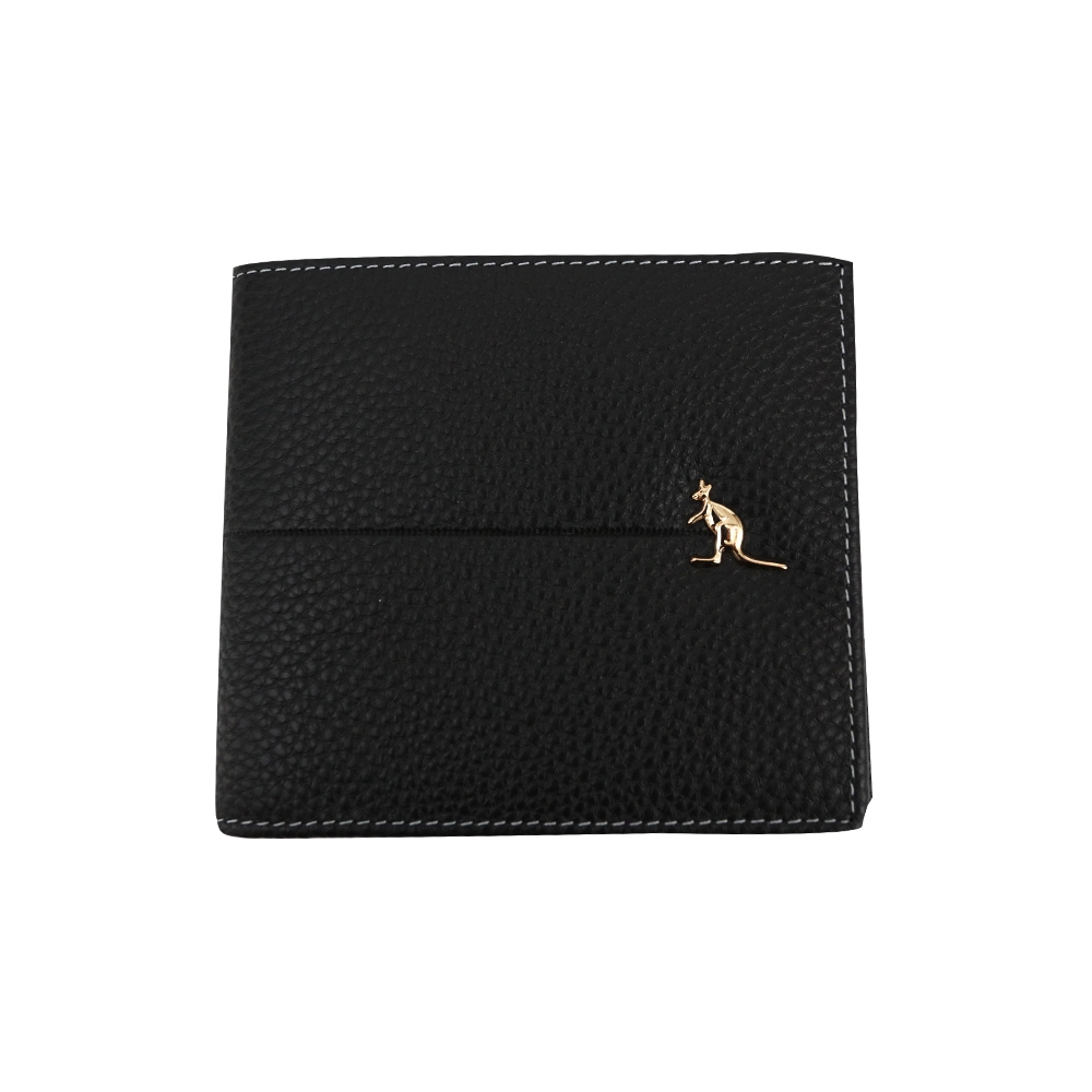 天藍小舖-低調簡約袋鼠金釦真皮男用橫式短夾-單1款-A08081500黑色Bifold & Trifold Wallets天藍小舖 SkyBlue