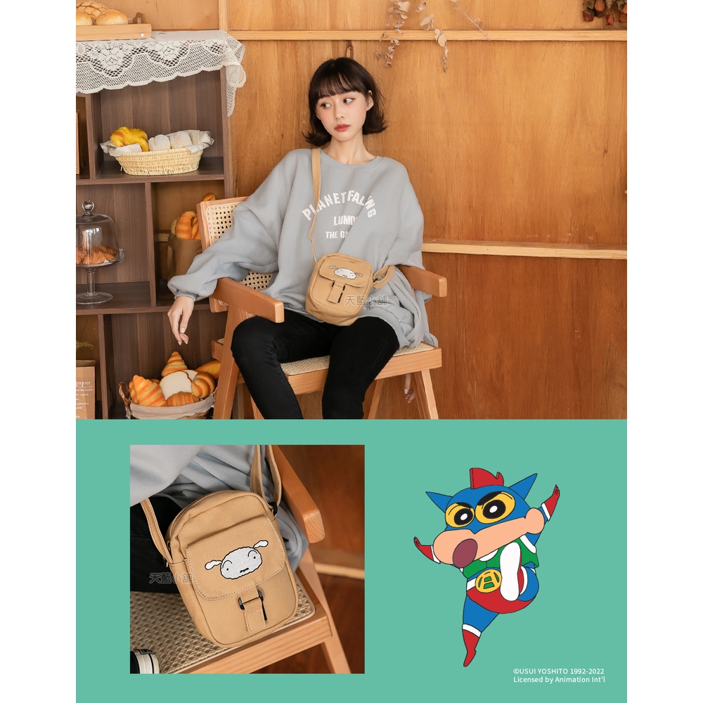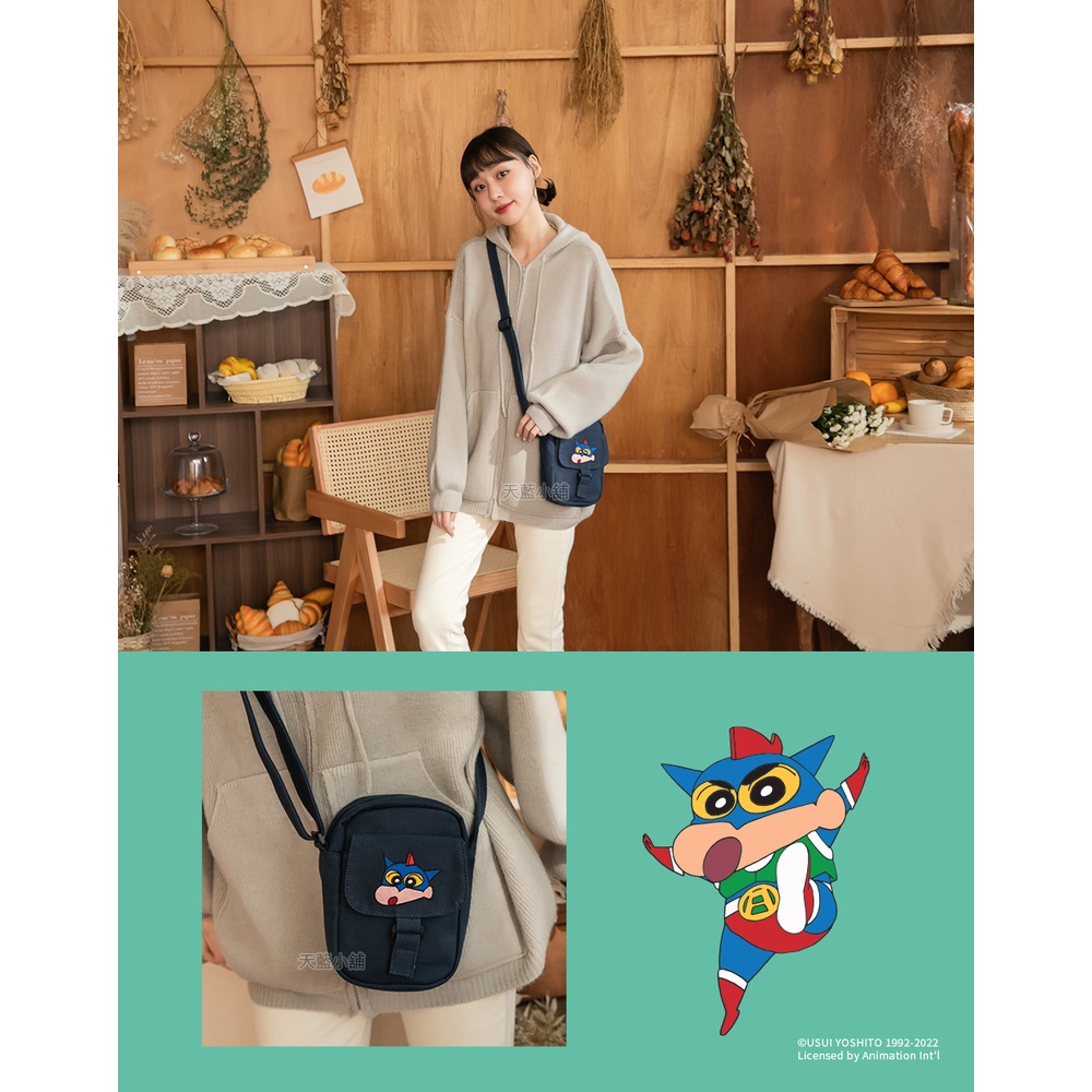 天藍小舖-蠟筆小新質感帆布刺繡圖案斜背小包-共3色-A17174279上學小新|小白|動感小新天藍小舖 SkyBlue