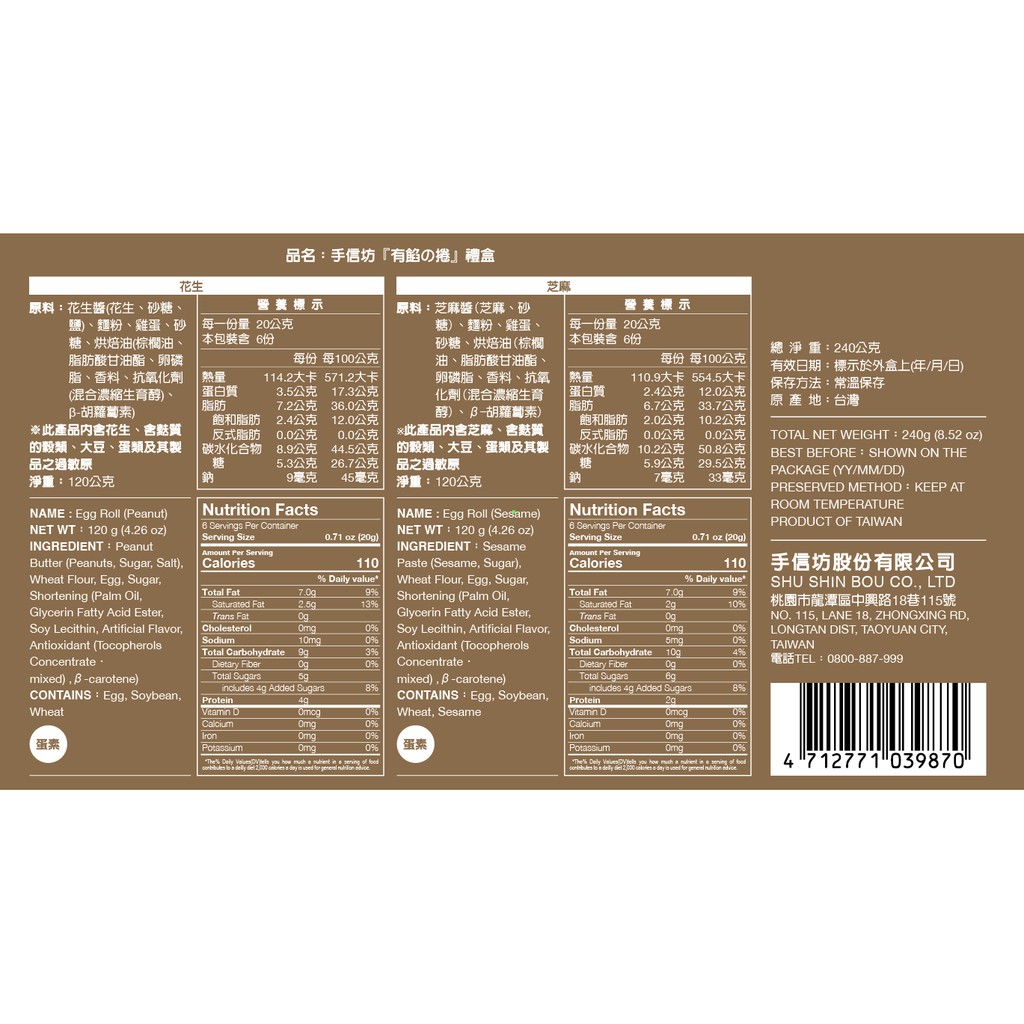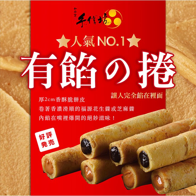 【手信坊】有餡の捲禮盒 12入/盒(口味:花生味 /芝麻味)蛋素 |常溫配送 |蛋捲藏餡了! 榮獲ITQI二星獎 禮盒【有餡の捲禮盒】12入/盒Biscuits, Cookies & Wafers手信坊 官方旗艦店