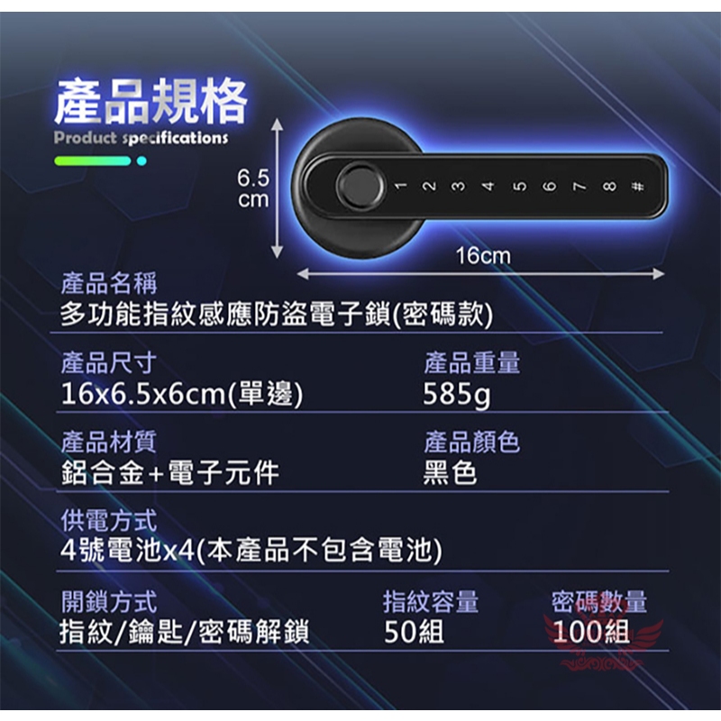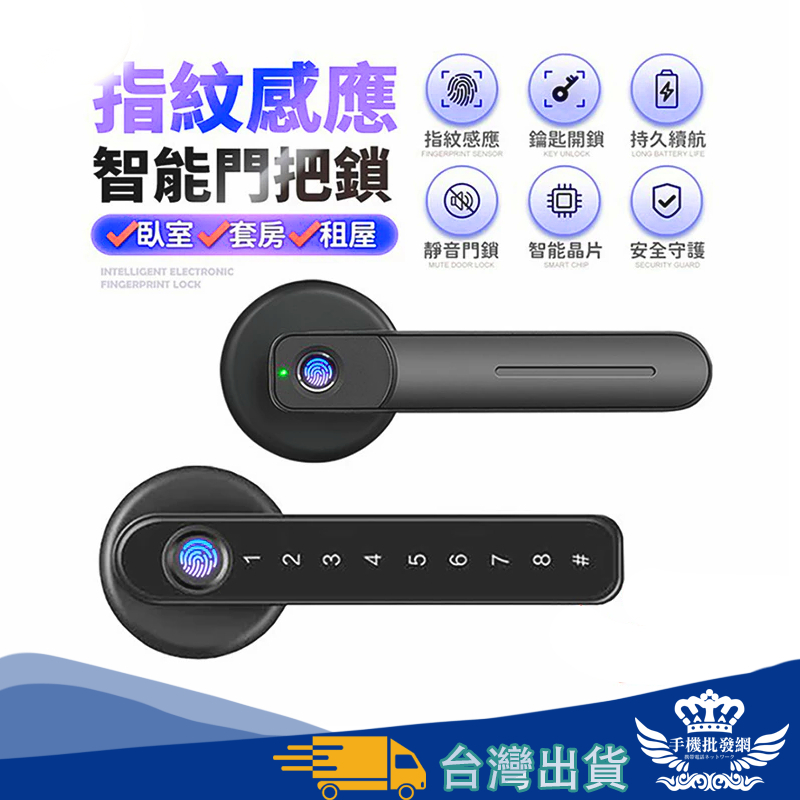 『隔日到貨』手把鎖 電子鎖 密碼鎖 指紋鎖【手機批發網】《指紋+密碼+鑰匙》靜音解鎖 常開模式 喇叭鎖 防盜鎖CK3三合一-黑Door Hardware & Locks手機批發網
