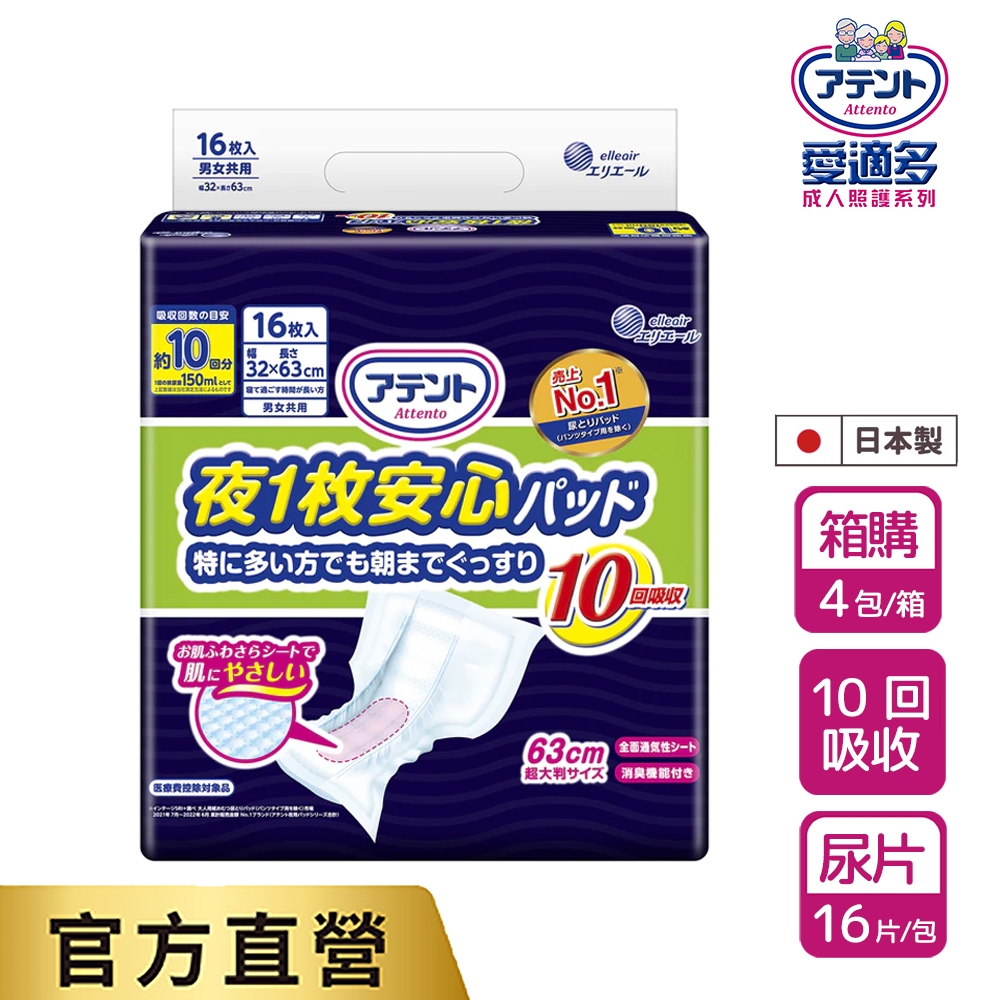 日本大王Attento 愛適多夜間超安心尿片特大量_10回吸收_16片/包(4包/箱 箱購)日本大王Attento 愛適多夜間超安心尿片特大量_10回吸收_16片/包(4包/箱 箱購)Adult Diapers & Incontinence日本大王elleair 官方旗艦店
