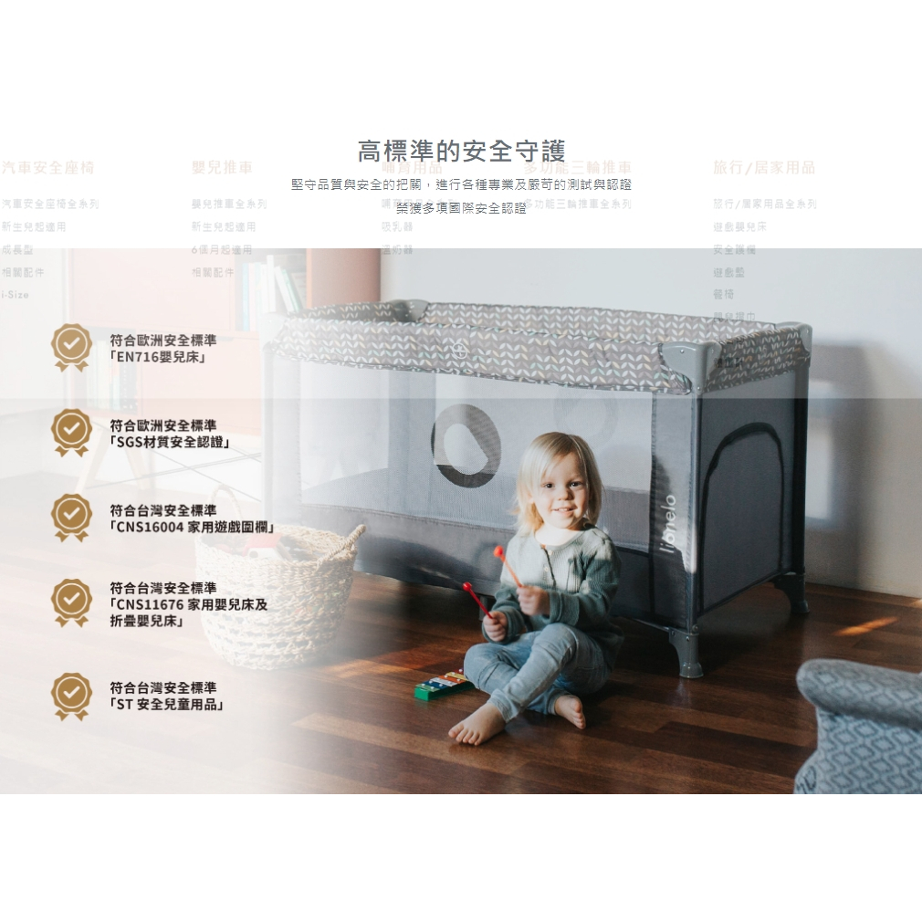 Lionelo Stefi 二合一遊戲嬰兒床|遊戲床|嬰兒床|遊戲圍欄【六甲媽咪】多彩灰|檸檬黃Cribs & Cradles & Beds六甲媽咪親子生活館