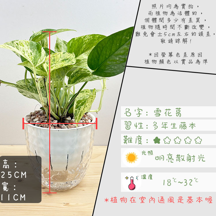 【小品文化】雪花葛【現貨】4吋鑽石免澆水盆栽 室內植物 室內盆栽 懶人盆栽 水培植物 水培盆栽 室內盆栽 觀葉植物雪花葛+4吋鑽石盆Plants小品文化-免澆水盆栽