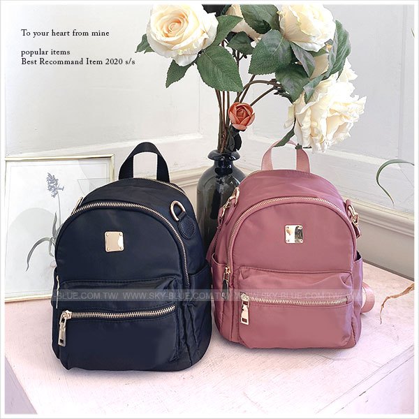 天藍小舖-鏡面小方塊雙層兩用尼龍後背包-共5色-A12121993黑色|淺紫|迷彩|卡其|暗粉天藍小舖 SkyBlue