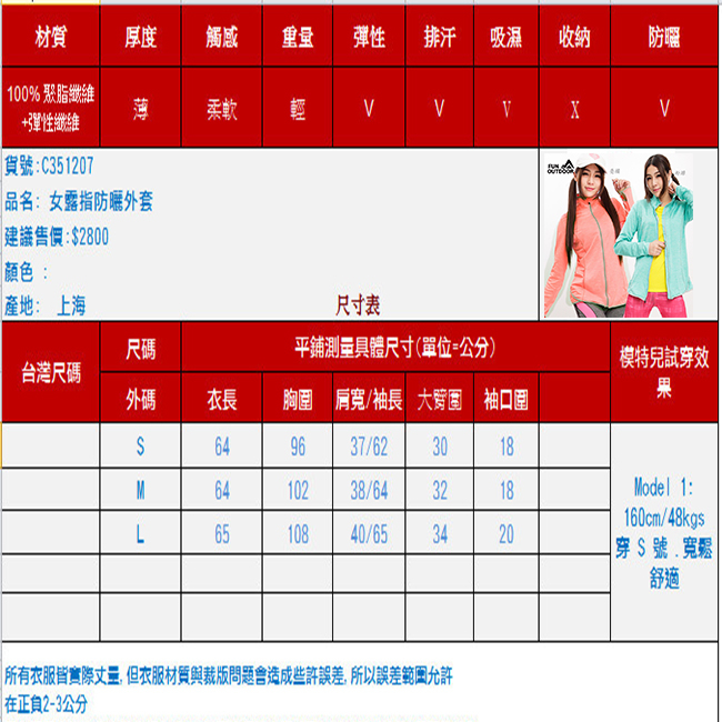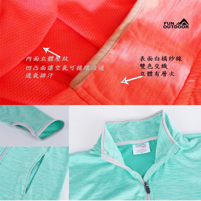 【戶外趣】女薄款超彈性透氣防曬立領露指外套(C3512 二色可選)亮橘,S|亮橘,M|亮橘,L|粉綠,S|粉綠,M|粉綠,LJackets戶外趣(FUN OUTDOOR)官方商城