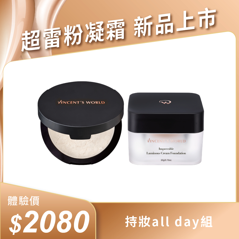 文森先生|文森超雷粉凝霜(1罐)x服誇防水蜜粉8g(1盒) | 一拍無痕 絲滑不卡紋|12HR持妝 贈1g超雷粉凝霜踏雪尋梅,一盒|杏花微雨,一盒Face文森先生|VINCENT’S WORLD 旗艦店