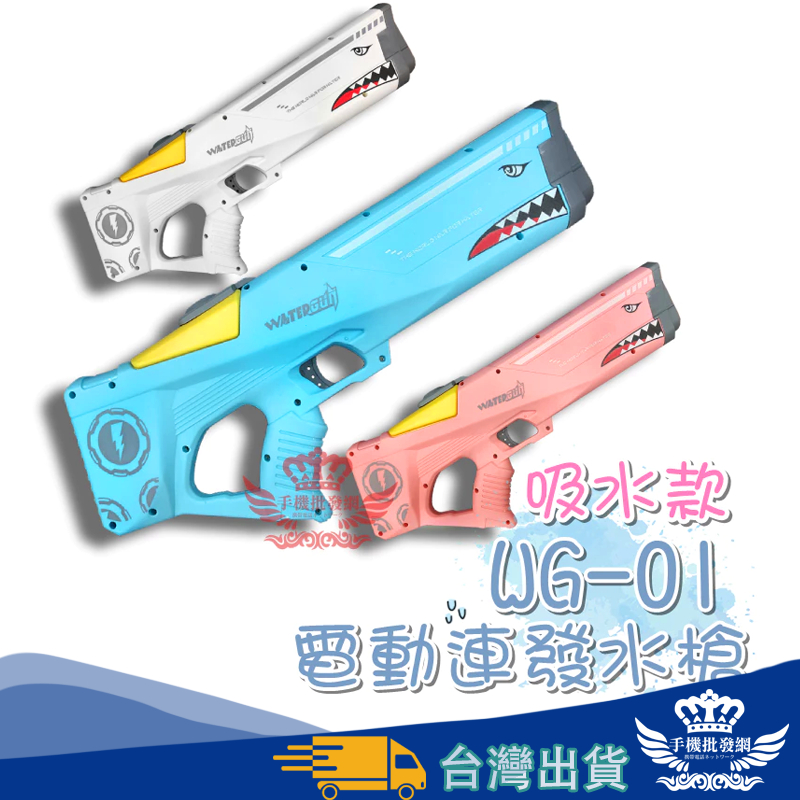 WG01鯊魚電動水槍【手機批發網】《吸水款 檢驗合格 台灣保固》電動水槍 遠射程 連續射擊 水仗 水上遊戲 夏日消暑