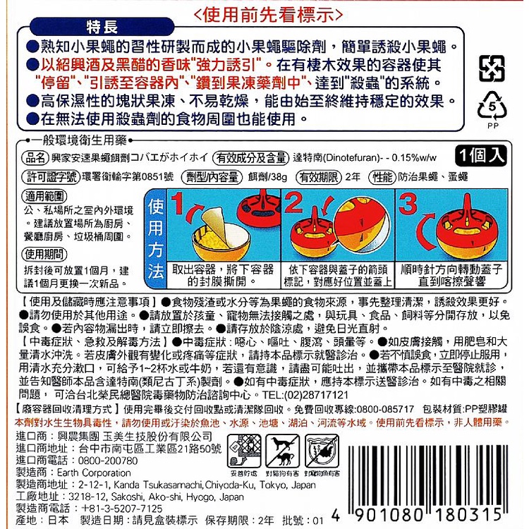 日本 興家安速 果蠅餌劑(38g) 防治果蠅 補蠅神器 果蠅誘捕器 果蠅誘捕劑【小三美日】空運禁送 DS007499單一Pest & Weed Control小三美日