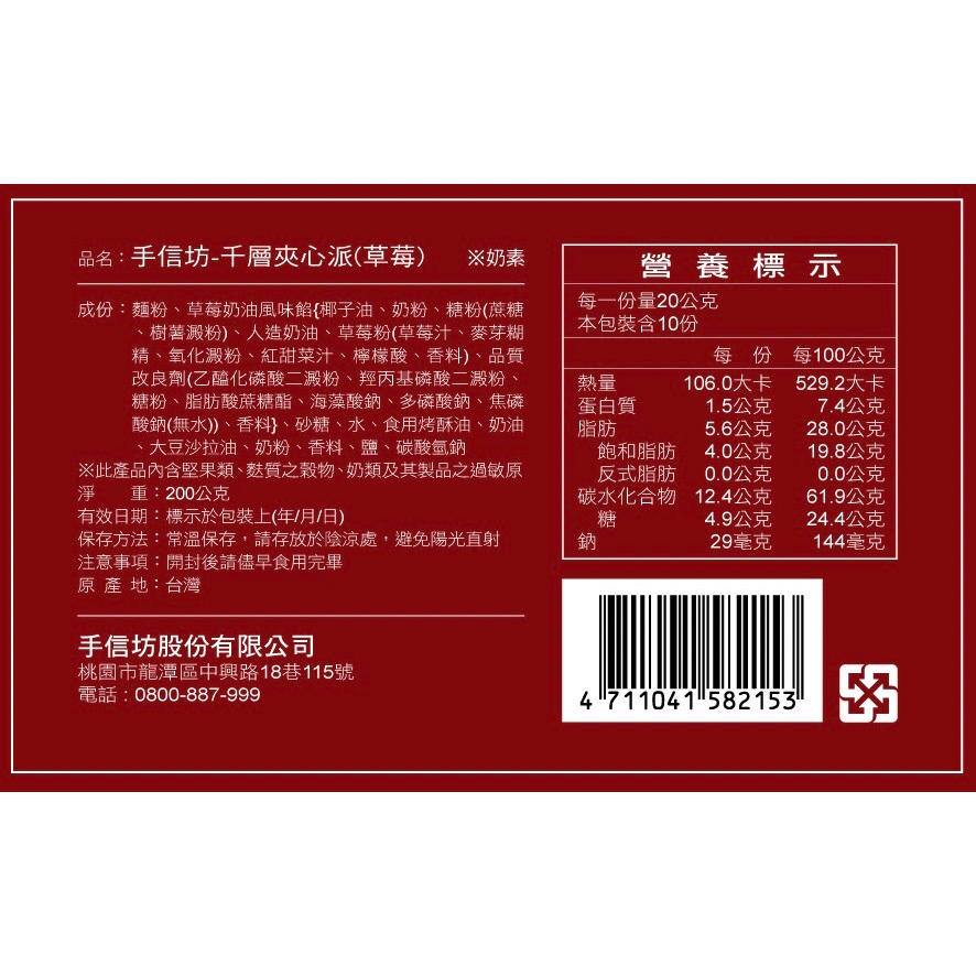 【手信坊】千層夾心派 10入/盒 (口味:草莓內餡) 奶素 | 常溫配送 | 幸福のビスケット禮盒 禮盒【手信坊】千層夾心派 10入/盒 (口味:草莓內餡) 奶素 | 常溫配送 | 幸福のビスケット禮盒 禮盒手信坊 官方旗艦店